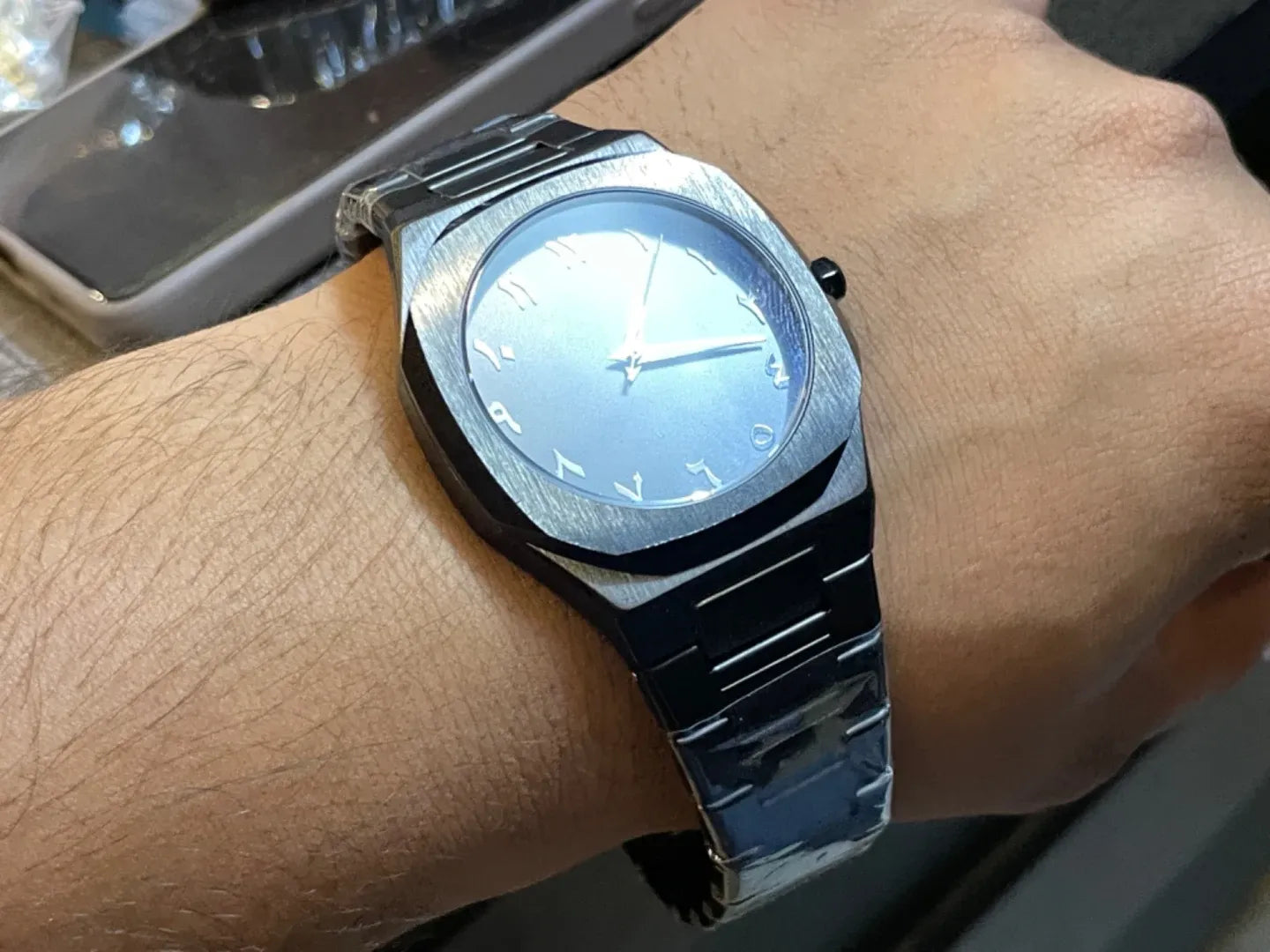 Step up your style with the Arabic Aura Watch – All Black Edition, the most hyped and in-demand lightweight (44g) timepiece. This best-selling article combines elegance, bold aesthetics, fiber-chained straps, and premium craftsmanship, making it the perfect statement piece for watch lovers.